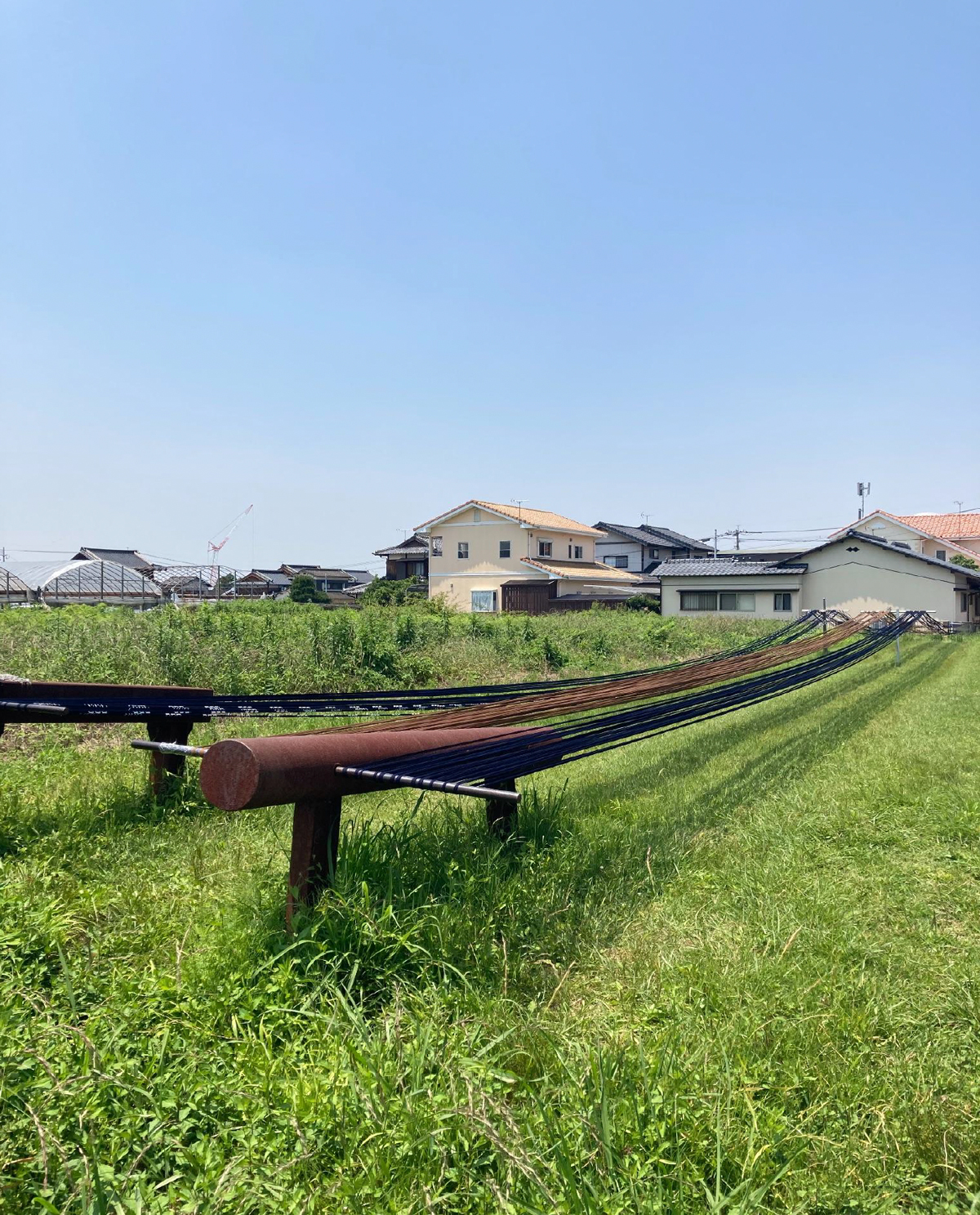 This installation for Paris Design Week 2022 was imagined with the textile designer Aki Watanuki. Inspired by the process of Japanese weaving called “kurumé-kasuri”, we transposed beautiful scenes from the daily landscape of Hirokawa to the Bibliothèque Historique de la Ville de Paris and composed three graphic and coloured panels on the traditional French front. To do this, a special cooperation was set up with several craftsmen of the kurumé-kasuri union, each of them giving various lengths of dyeing threads. While the kurumé-kasuri is today weakened by a globalized and standardized textile industry, this installation wishes to establish links between Hirokawa and Paris in order to imagine new futures for this singular and historic weaving.